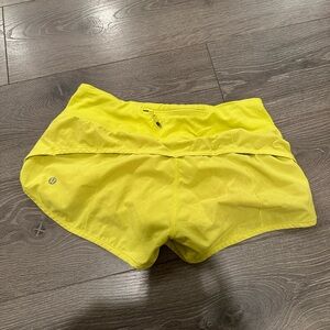 Experience ultimate comfort and visibility with these vibrant yellow athletic shorts from Lululemon Athletica. Crafted from a lightweight, moisture-wicking fabric, these shorts ensure you stay cool and dry during your workouts. The elastic waistband offers a secure fit, making them perfect for any athletic activity.