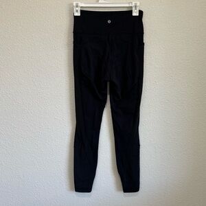 Lululemon Women's Size 4 Black Leggings With Pockets Mesh Cut Out Workout Gym Activewear Yoga