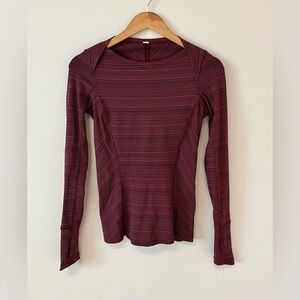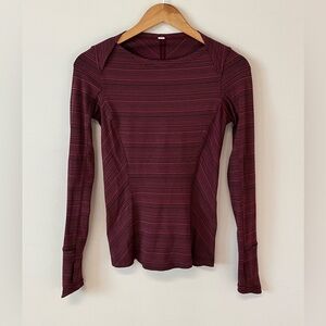 Lululemon Women's Size 4 Catch Me Long Sleeve Top Kanto Stripe Wine