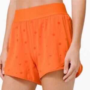 Lululemon Women’s Size 6 Poco Logo Foil Print Orange Hotty Hot 4" Shorts