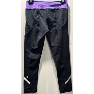 Lululemon Women’s Size 6 Run Zipper Pocket Reflective Crop Pants Capri Purple