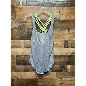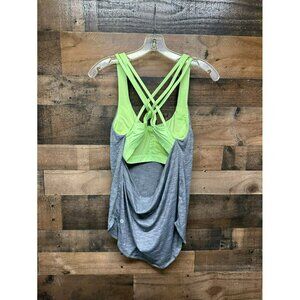 • Grey Tank Top with Fluorescent Green Built-In Bra