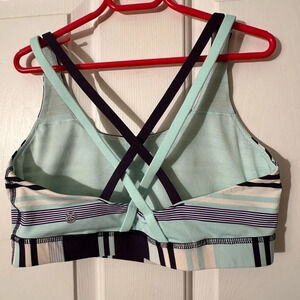 Lululemon Women’s Striped 8 Sports Bra Navy Aqua Criss Cross