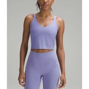 Lululemon Scoop Neck Yoga Tank in the Grid Texture fabric, Size 14. Features a soft, lightweight, four-way stretch material with a built-in shelf bra for light support. Scoop neckline, wide straps, and a cropped tight-fit silhouette. Sweat-wicking, quick-drying, and perfect for yoga, Pilates, and everyday athleisure.