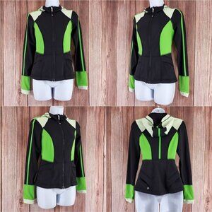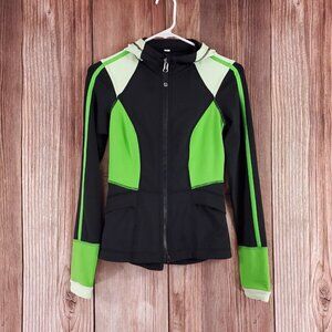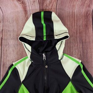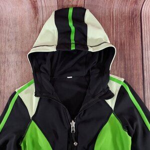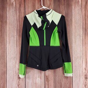 Lululemon Womens Size 4 Studio Surf Jacket Black Green Full Zip Front Hood Pockets