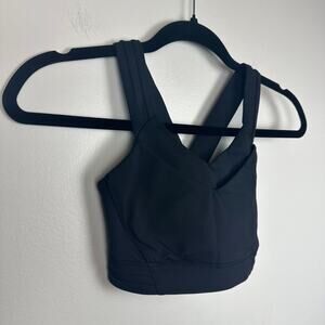 Lululemon Womens V-Neck Thick Strap Crossback Solid Black Activewear Sports Bra