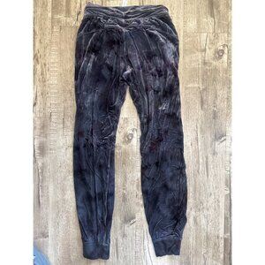 Stylish and comfortable velvet joggers designed by Lululemon. Perfect for lounging or casual outings. Features a stretchy, soft material with a unique black and purple color blend.