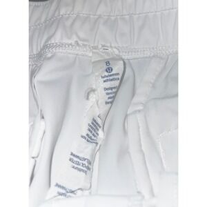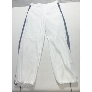 Keywords: Lululemon, track pants, athletic pants, white pants, gray stripe, drawstring pants, size 8, activewear, workout pants, running pants, casual pants, sportswear, women's pants, elastic waist, zipper pocket
