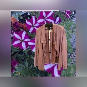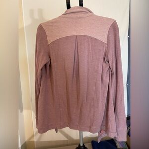 Great used condition. Stretch. Side pockets. Button at neck area for a poncho like look or leave as open front. Rose pink color. Thumbholes.