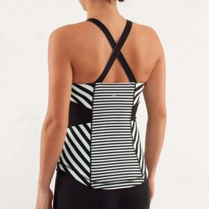 Luon light fabric is inherently moisture wicking. The open back and wide, stretchy shoulder straps allow you to twist with ease. Built-in shelf bra with removable cups for added shape and coverage. Mesh panelling thoughtfully placed in the bust's lining contoured hemline is cut higher on the sides.
