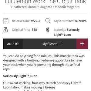 Lululemon Work the Circuit Tank in Moonlit Magenta Size 4