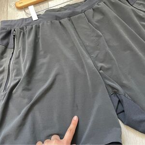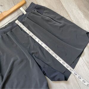 Lululeon Switch Up Workout Shorts in the color Black. Elastic waistband, zippered slant front pockets, 6" inseam. Linerless. Swift fabric. Can't find the size dot, but based on measurements best fits size xlarge, mens. In great pre-worn condition, no major issues. Perfect for workout, gym, activewear, athleisure, lounge, casual, spring summer.
