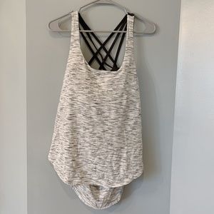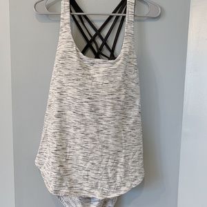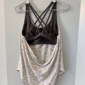 Built-in padded sports bra, only worn once or twice! Has a great scoop back and is super comfy to wear to work out or just as casual wear. Fits like a large