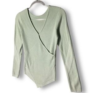 Lululemon Wrap It Back Sweater Sz 8 Sea Breeze Green Ribbed Knit Athleisure