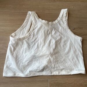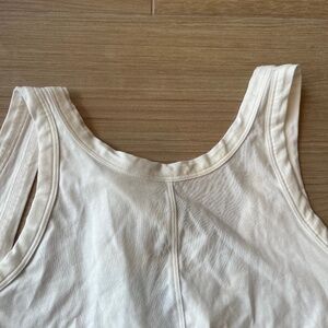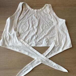 Lulu Lemon white wrapped around your back tank top. Not cropped and not long. No stains on the white. Great condition! Make any offer! Good clean home.