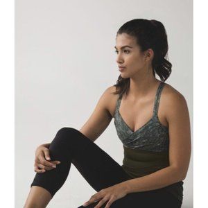 Lululemon Wrap it Up Tank Top Sports Bra Jazzy White Gator Green Size 4.