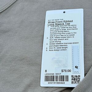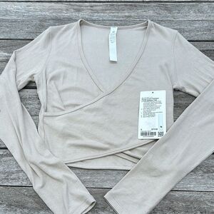 Lululemon Wrap-Front Ribbed Long Sleeve Top Mojave Tan NWT WOMENS SIZE 8