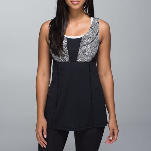 Lululemon Wrapper's Delight Tank Top Womens 8 Black Petal Ghost Mesh Athleisure