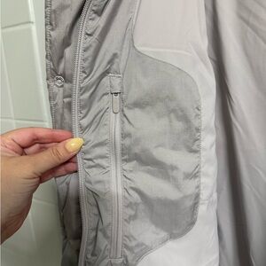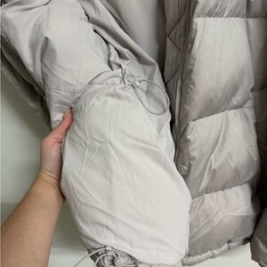 Size 12 in Lululemon (Large) Literally the best winter jacket you’ll ever own!!! I’ve lost weight and this sadly does not fit me anymore but I bought a new one in black I love these SO MUCH! I love the length on it too. It covers your butt but isn’t too long!