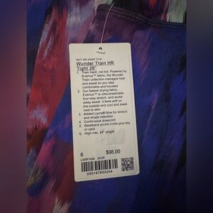 NWT Lululemon Wunder Train HR Tight 28". Diamond Dye! Size 6. High rise, 28" length. New square dot.