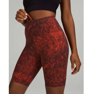 Lululemon Wunder Train High Rise Short 8" Denim Wash Autumn Red Black Size 2