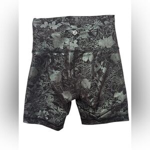 Preloved, excellent condition Lululemon Wunder Train High-Rise Short 6" *Foil in the color Logo Flourish Black Iridescent Foil. Size 4! No signs of wear!