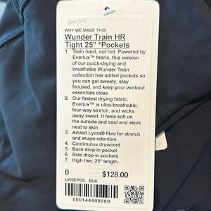 Lululemon Wunder Train High-Rise Tight with Pockets 25"Black size 0 NWT