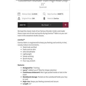 Features: Highrise, full on Luon fabric, pocket inside waist
