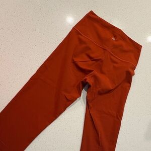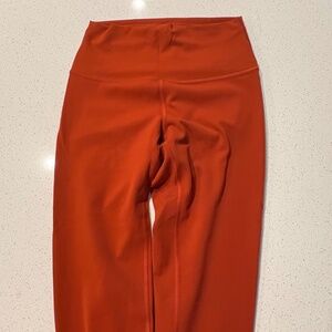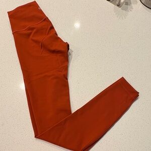 Lululemon wunder train high-rise tight 28" in a unique orange/red color - women size 6. Absolutely no flaws, never worn, fantastic condition. From a pet-free and smoke-free home. Offers welcome!