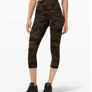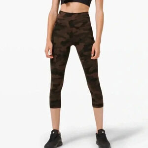 Lululemon Wunder Train High Rise Crop Cropped Leggings 21" Camo Brown Size 4