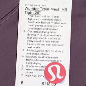 Lululemon Wunder Train Mesh HR Tight 25” Grape Thistle Purple Women's 6 NWT New