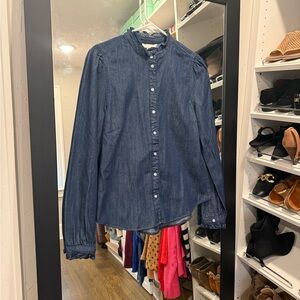 •Cropped length is cut above the waist—perfect with high-rise pants