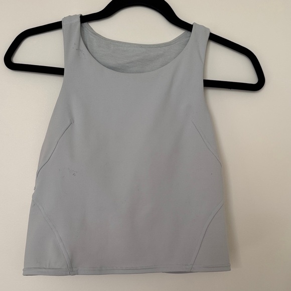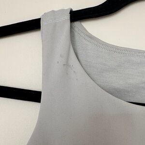 Stylish light gray sleeveless top. Perfect for casual wear. Some markings on tank top as seen in pictures, has a built in bra