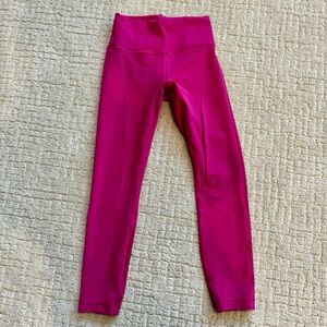 Lululemon Wunder Train 25 inch in Ripened Raspberry and EUC Excellent used condition. I love this color so much when they started to sell out I purchased a size smaller than I usually do- so I just don’t reach for them often. Last photo for information only, the rest are of the actual item.