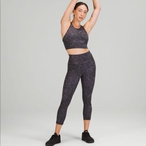Lululemon Wunder Train Long Line Sports Bra Denim Wash Print Dusky Lavender