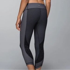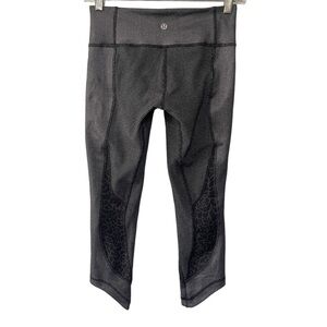 Lululemon Wunder Under 22” Crop Sashiko Black Mid Rise Legging Petal Camo Gray 4