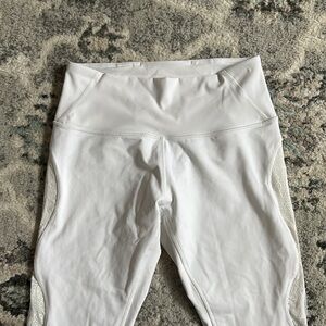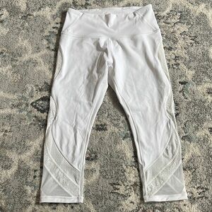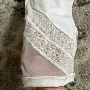Stunning panels of breathable lace elevate these classic yoga crops.