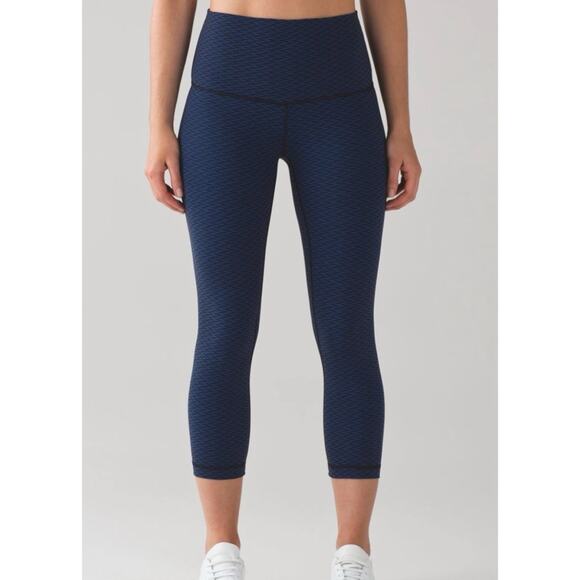 Lululemon Wunder Under Crop Black & Blue Pattern