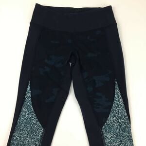 Lululemon Womens Crop Leggings Pants Blue Camouflage Low Rise Pocket Pull On size 2