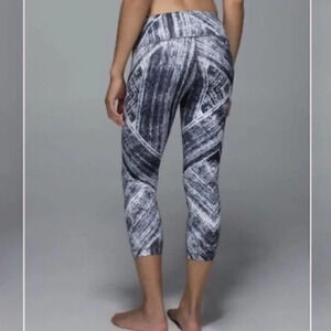Lululemon Wunder Under Crop Leggings II Full-On Luon Heat Wave Soulcycle Miami Black and White Print Size 4