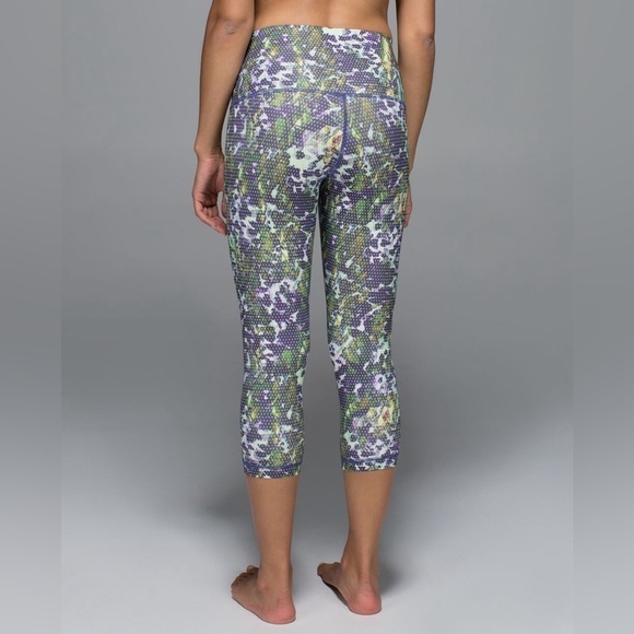 Lululemon Wunder Under Crop Full-On Luxtreme Roll Down Floral Sport White Multi