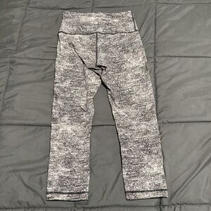 Lululemon Wunder Under Crop (Hi-Rise) *21" in Rush Jacquard Black White, great preloved condition, please review photos for condition of leggings. Size 6, pull tag is removed as shown in photos