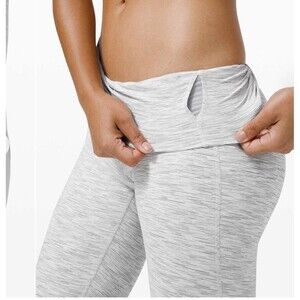 The Lululemon Wunder Under Crop High-Rise *Roll Down Scallop Full-On Luxtreme 23" in size 6 is a stylish and comfortable pair of activewear leggings designed for women. Made of nylon fabric with a down fabric type, these leggings feature a pull-on closure and a 23-inch inseam. The athletic fit and skinny leg style make them suitable for running and jogging, while the breathable and stretchy material ensures comfort during active occasions. With a cropped style and a gray color, these leggings are a versatile addition to any athleisure wardrobe.