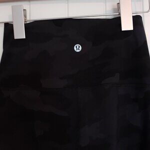 Very good pre-owned condition. Lululemon Wunder Under Crop High-Rise *Roll Down Scallop Full-On Luxtreme 23". Size: 2. Color: Heritage 365 Camo Deep Coal Multi.