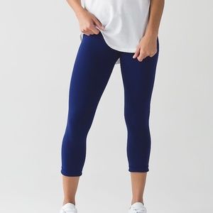 Lululemon Wunder Under Crop III (Reversible) Hero Blue / Pipe Dream Blue Size 6. Pre-Owned. Excellent Condition. No Stains Or Holes. Comes From Smoke-Free, Pet-Free Home.