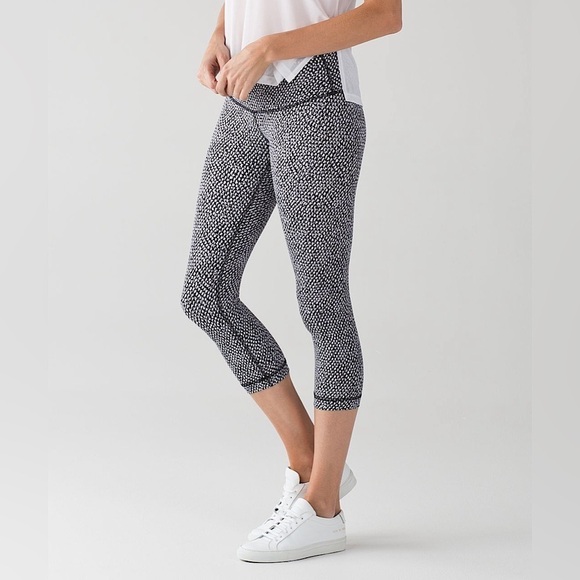 Lululemon Wunder Under Crop Legging III in Scatter Star Arctic Gray Black Sz 6