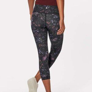 Lululemon Wunder Under Crop Legging Womens 6 Black Floral Hi Rise 21" Tight