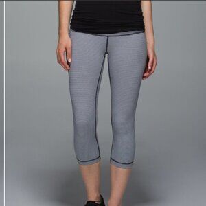 Lululemon Wunder Under Crop Leggings Gingham Luon White Blue