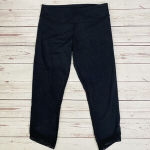 Lululemon Size 6 Cropped Leggings Black Mesh Layered Asymmetrical Hem