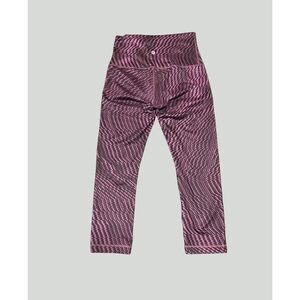 Unleash your inner fitness diva with the Lululemon Wunder Under Crop Shifted Horizon Red Grape Black Leggings in size 6. These cropped leggings offer a flattering fit, perfect for your workout or casual wear.
